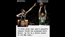 皮尔斯:我觉得塔图姆现在已经比杜兰特强了!