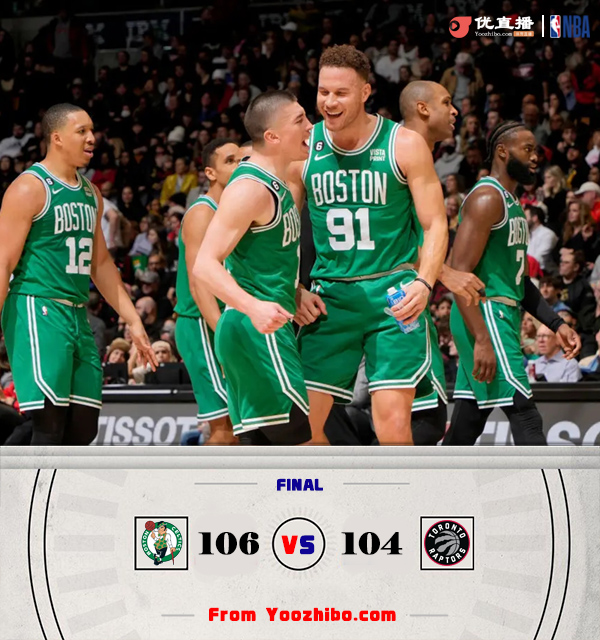 末节,开节绿军连续三记三分反超5分,猛龙这边冲框得分止血,但绿军三分雨不断拉大分差,后半节绿军进攻上来又开始哑火,猛龙很快追上比分,关键时刻双方混战,绿军保持2分微弱领先,猛龙连续进攻不中,最终凯尔特人106-104险胜猛龙。