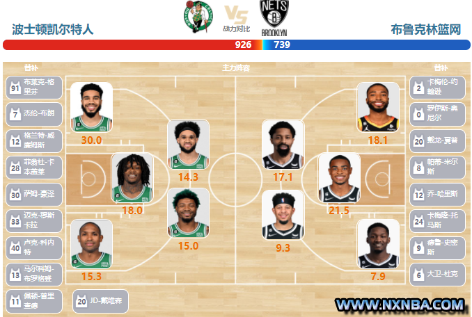篮网vs凯尔特人双方首发预测