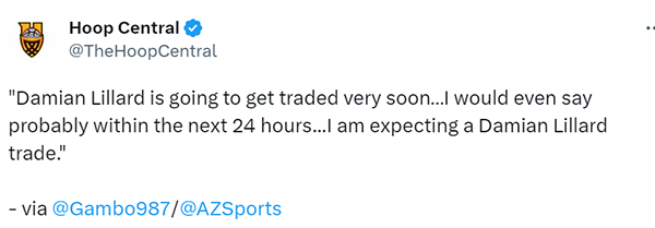 那么利拉德的交易多快会发生。太阳记者似乎很有信心不会太久。他说道:“利拉德会很快被交易,我甚至说很可能在未来24小时发生……我预计一笔利拉德交易会达成。”