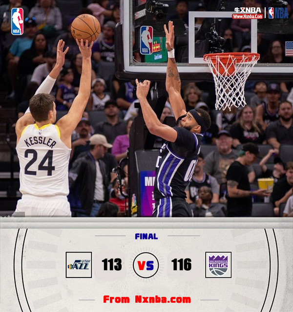 末节,国王马利克-蒙克拿下16分,爵士塔伦-霍顿-塔克拿下11分,最终国王116-113战胜爵士、