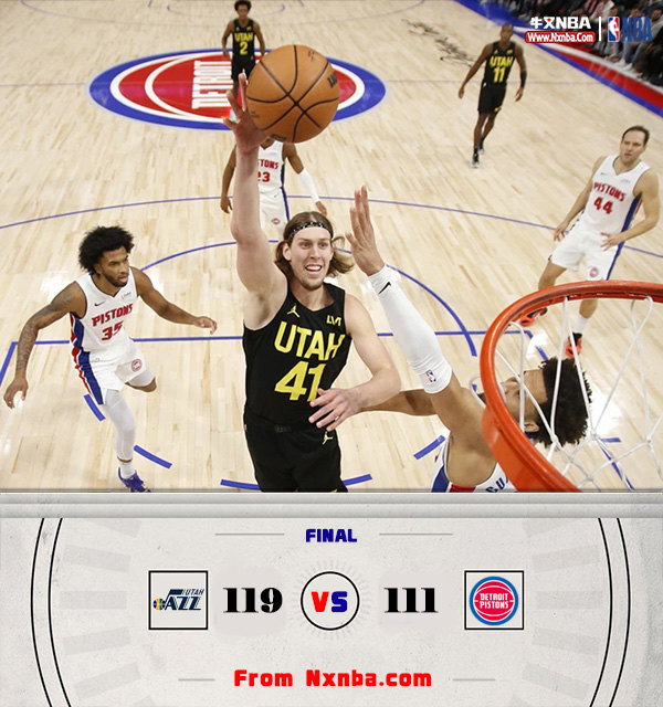 以上就是关于《NBA简报:爵士119-111击败活塞 奥利尼克27+6 康宁汉姆28+7+10 》最新新闻详细内容介绍,想要了解更多有关篮球的资讯请关注牛叉NBA录像网(www.nxnba.com)!!!