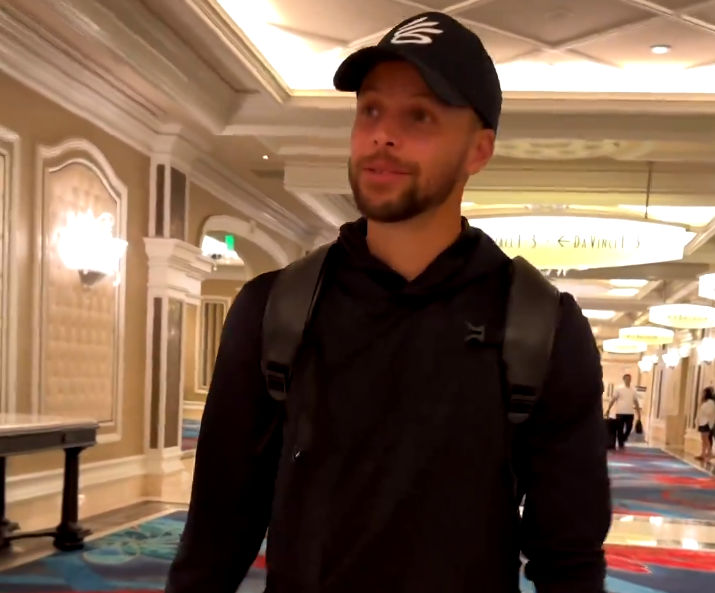 牛叉NBA录像网讯 北京时间7月5日,据NBA官网和美国男篮官网报道,勇士球星库里是第一个抵达拉斯维加斯训练营的美国男篮球员,视频中,库里一边走一边说道:“让我们开始吧!保持专注去冲击金牌!12个拥有顶级天赋的球员,来到这里就是为了同一个目标,我很兴奋!”