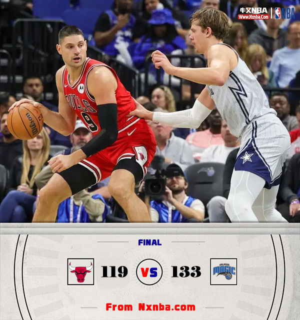 乐嗨直播讯北京时间11月28日NBA常规赛,半场魔术73-54公牛,最终魔术133-119公牛。