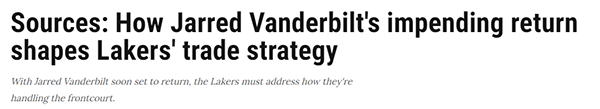 范德比尔特是雷迪克理想体系中的运动灵活型的中锋,此前Irwin就报道称,湖人会先看看范德比尔特在新体系内的作用和表现,再决定是否升级替补中锋配置。