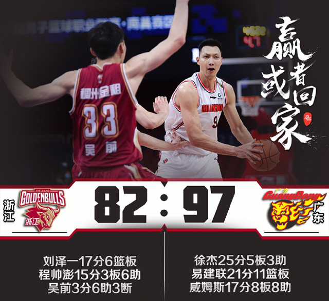 末节,胡明轩再造杀伤继续添分,打了近2分钟林孝天突破上篮终于得分止血,随后双方又是一通打铁乱战,拉科塞维奇六犯直接被罚下,威姆斯翻身跳投继续添分,浙江还是得不了分,打了半节多的时间只有林孝天得的那2分,比赛基本上失去悬念,程帅澎抛投拿到2分终于止住颓势,苏伟上来也能在内线吃饼给出回应,分差牢牢保持在20分左右,最终广东轻取浙江。